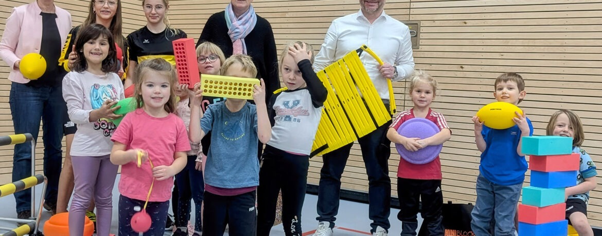 Die Geschwister-Reck-Stiftung spendete neue Spielgeräte für die Sport-Kids TV Mengen, damit Kinder Laufen, Springen, Werfen spielerisch trainieren können.