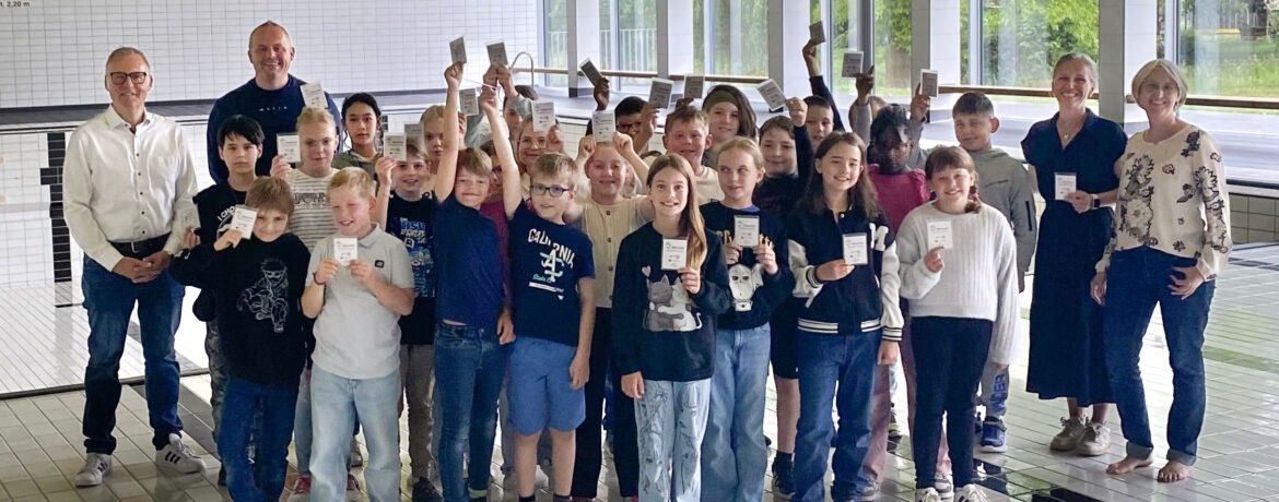 Die Geschwister-Reck-Stiftung unterstützt Grundschüler der Ablachschule Mengen beim sicheren Schwimmen mit dem Ablachtal‑Schwimmpass.